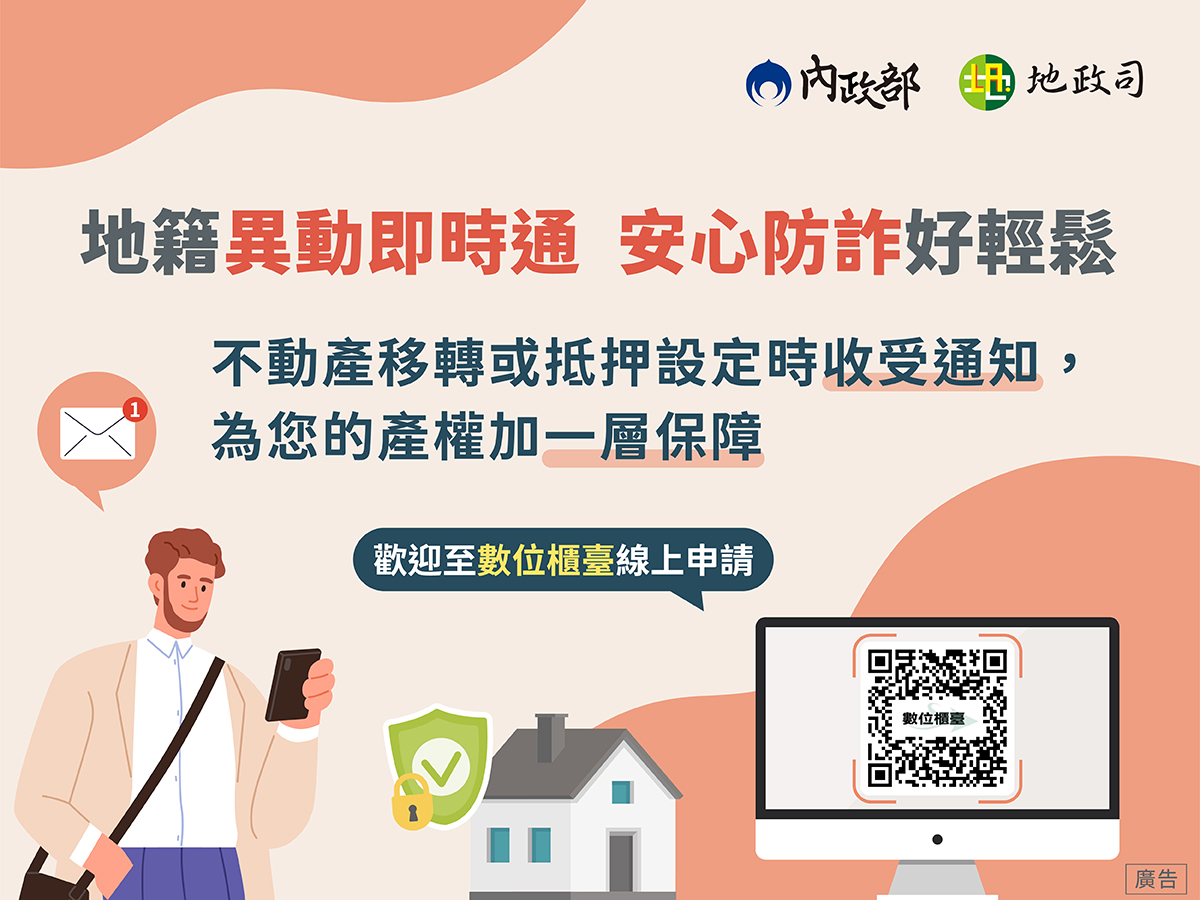 地籍異動即時通,安心防詐好輕鬆!