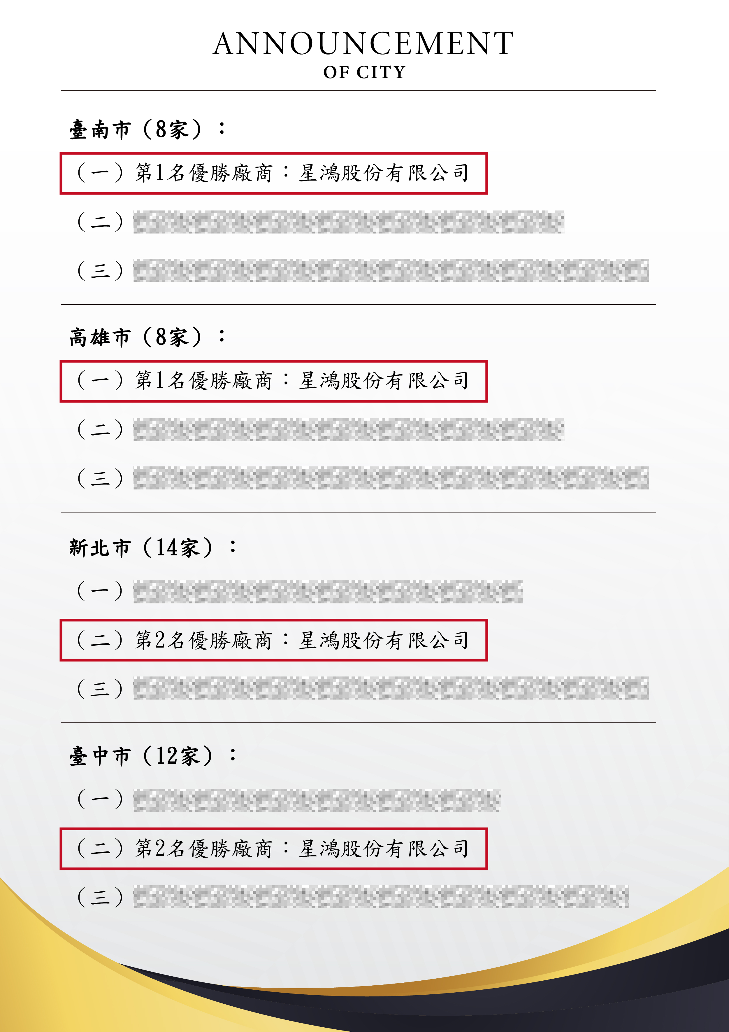 狂賀!星鴻.星華公會版六都序列排名 總評選第一名
