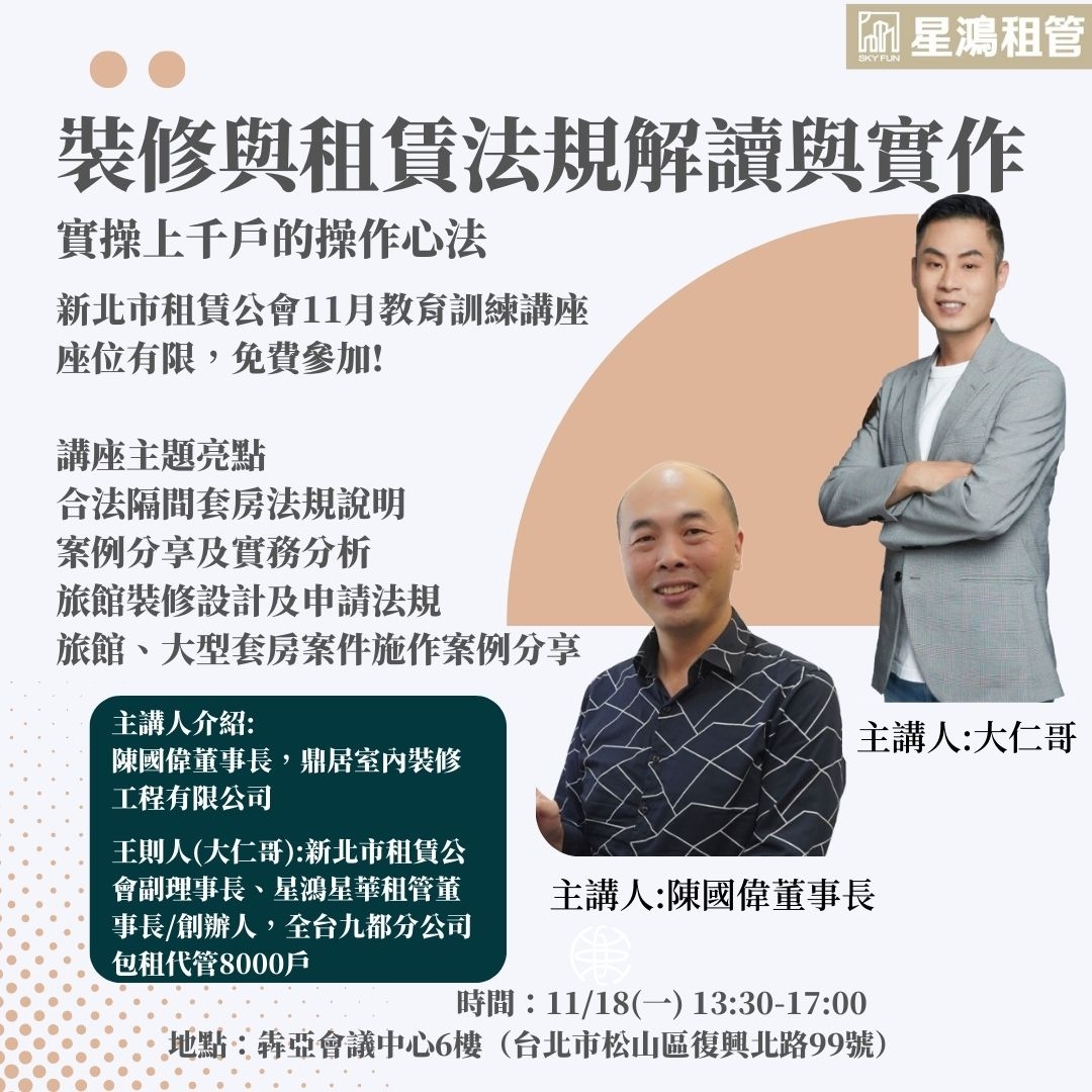 社會住宅推進、房屋稅2.0上路、租賃專法調整...如果現在還用舊方法出租,不只是落伍,很可能是在放大風險。政策快速調整,租屋市場同步重組,租金延遲、修繕爭議、溝通斷層,這些實務中常見的困擾,往往消耗房東大量的時間與心力,透過正確的法律知識與篩選機制,這些其實都是「可預先避免」!本場講座讓星鴻帶您看懂制度,建立穩健的收租模式。